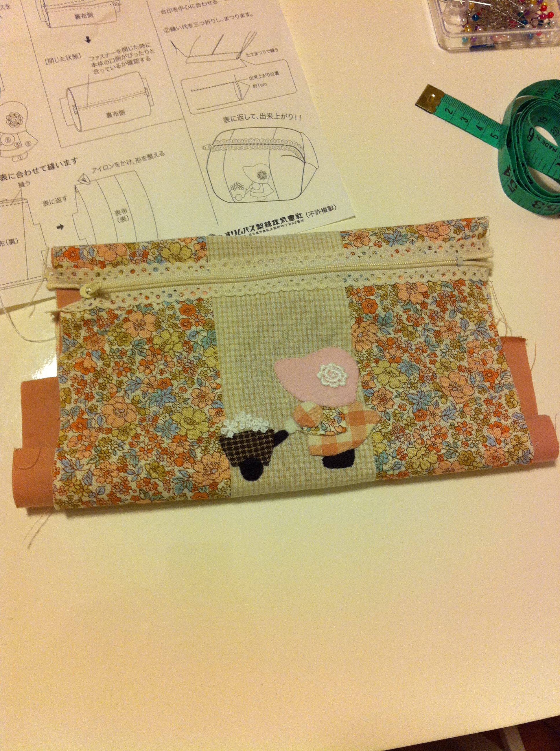 I made this pouch by handsewing. The kit comes with fabrics and a zipper. All you need are needles and threads.