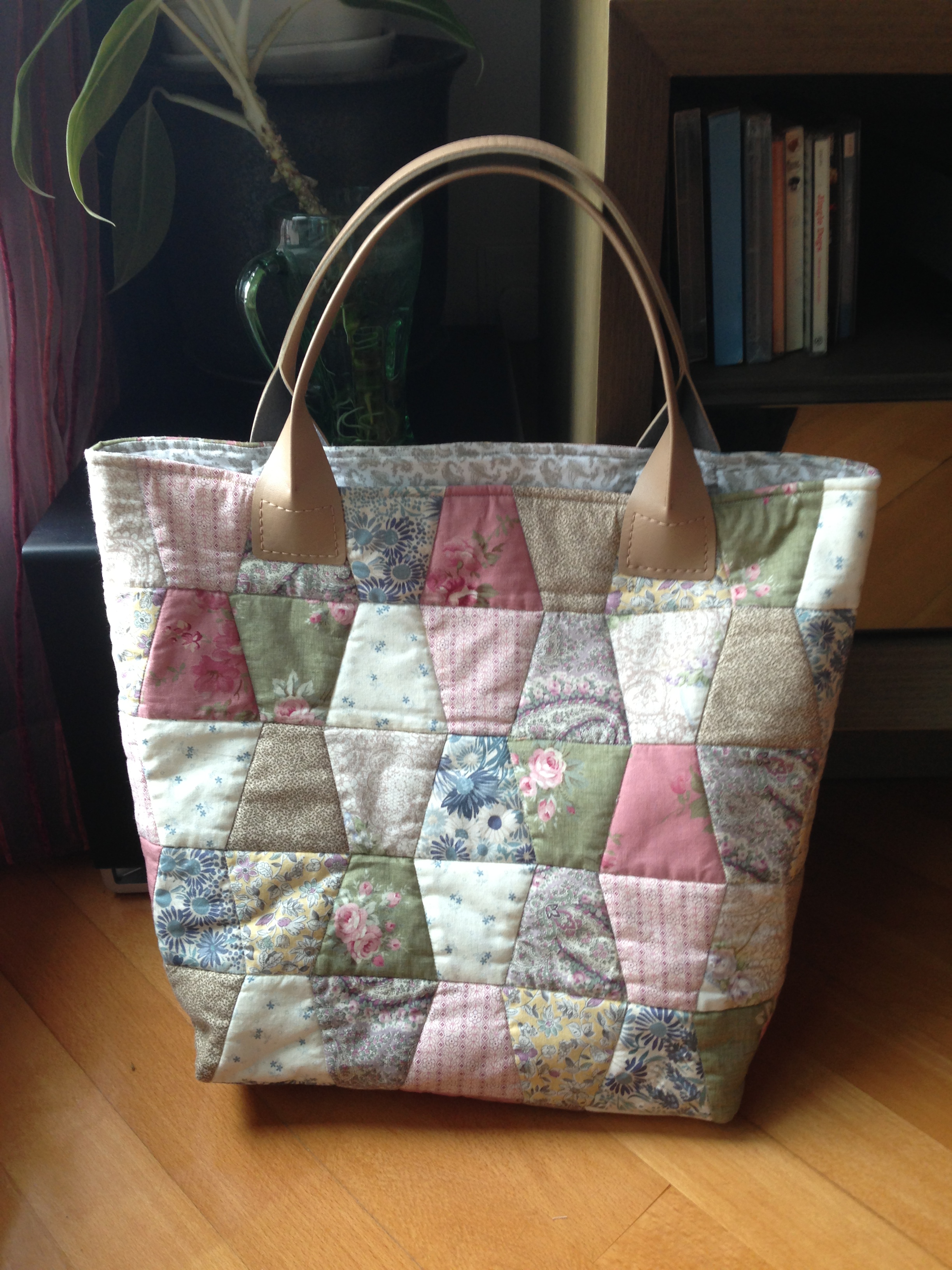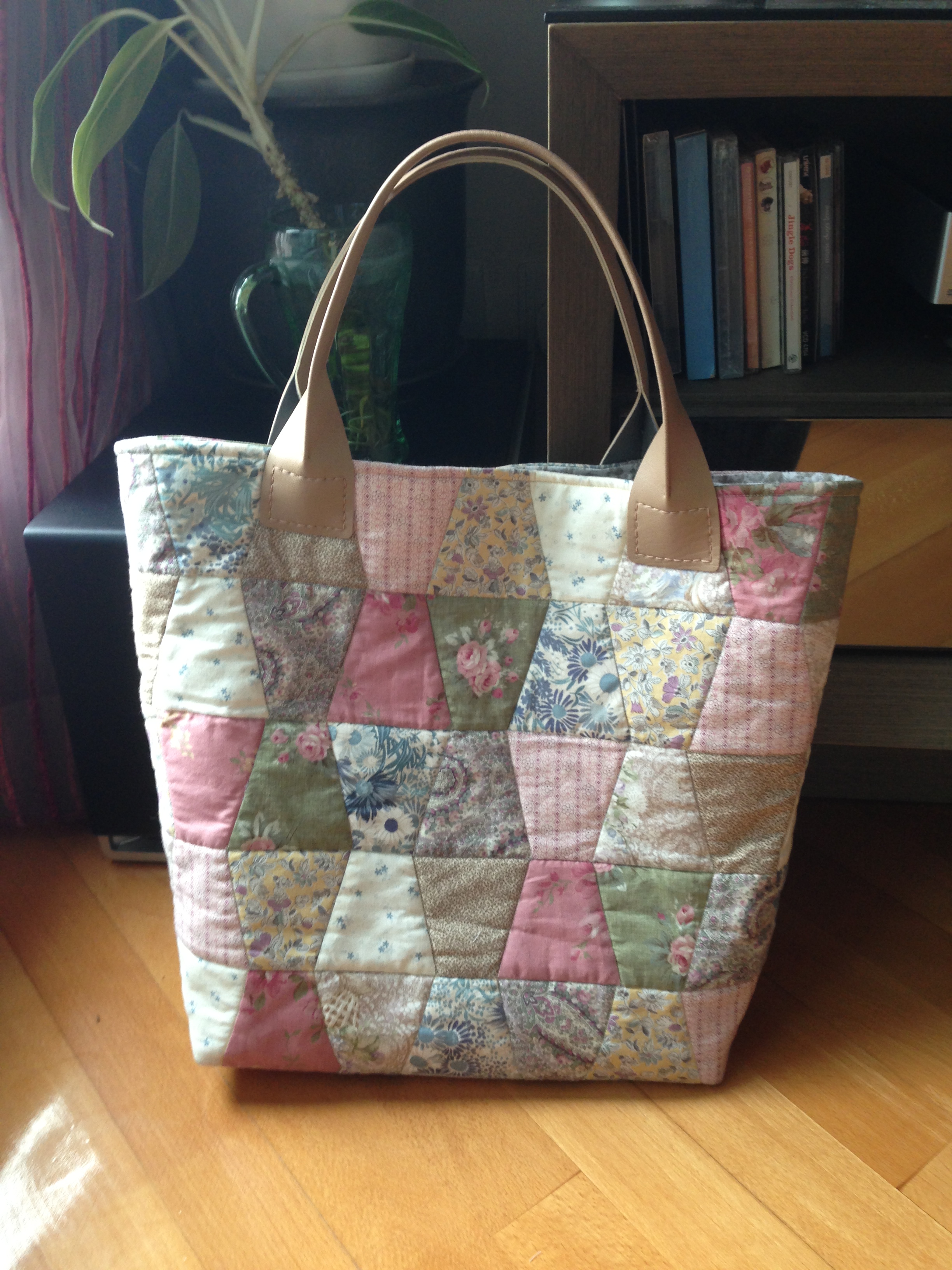 This bag make up of many trapezoids and fibric wise, I chose similar florial printed pattern fibric. As it turns out, it’s very elegant and fresh.