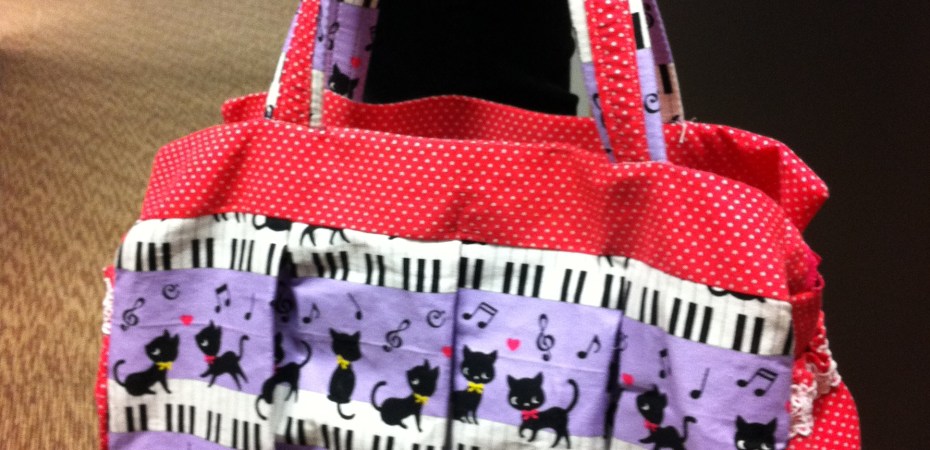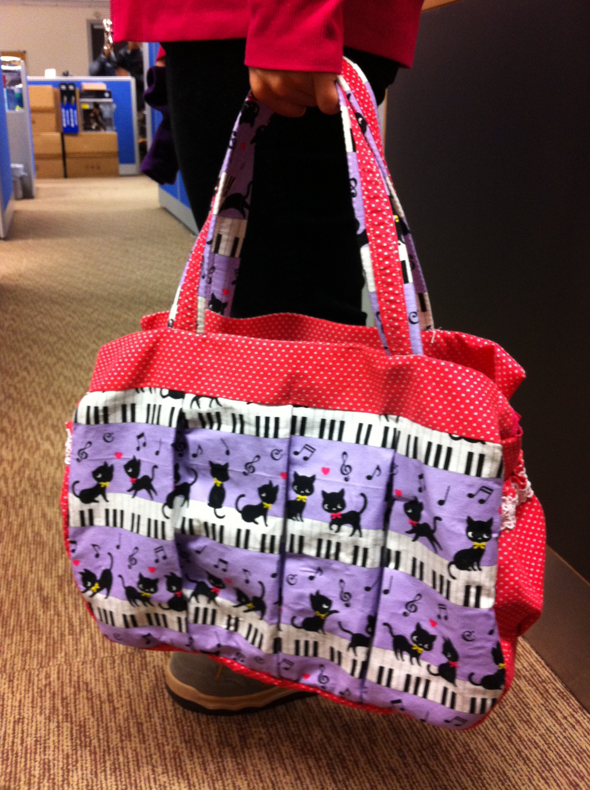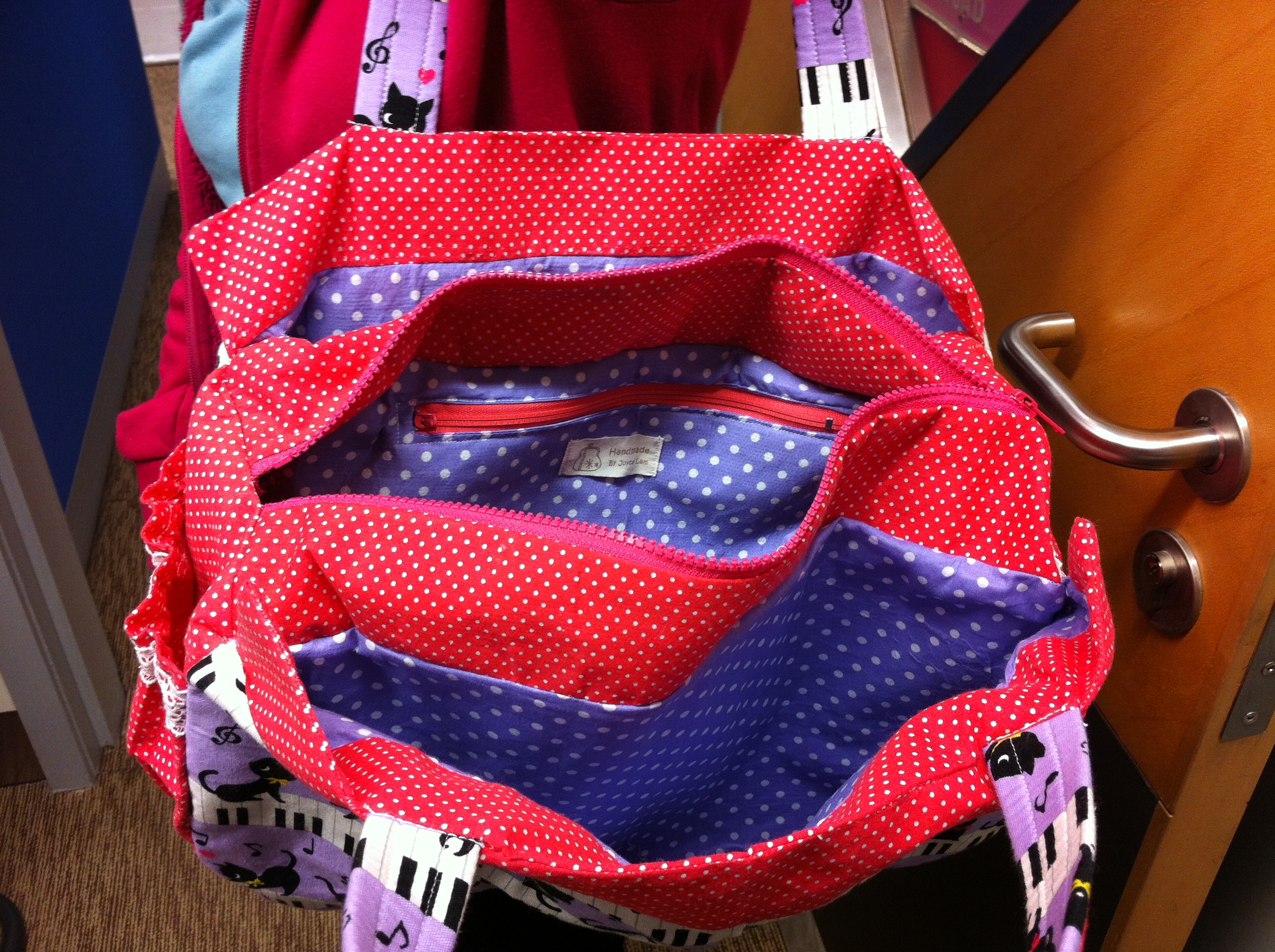 This is an interesting and challenging order for a bag. Miss QQ loves bag with many layers and pockets, and she’s a cat lover! She wants a bag for her travel, with many layers so that she can organise her things easily.