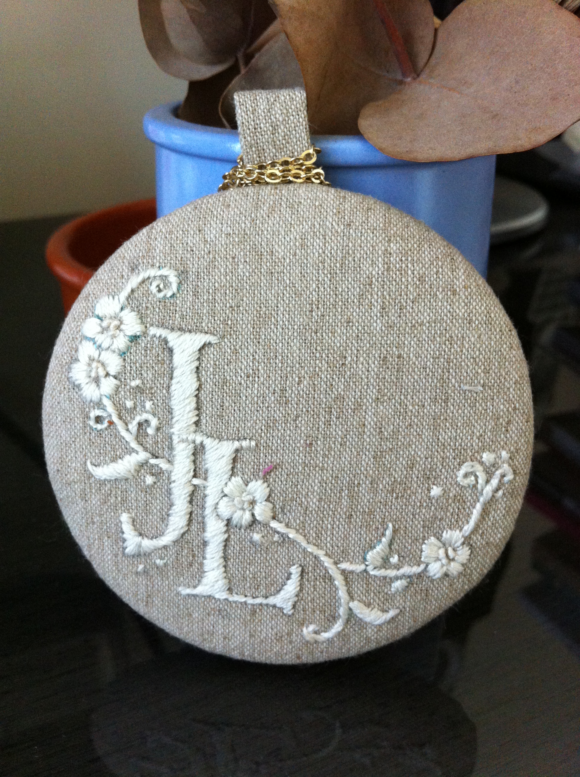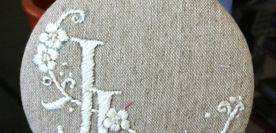 Do a loose stitch around the edges of the circle and slowly tighten the thread. Check the front to see to make sure the embroidery is aligning the centre.