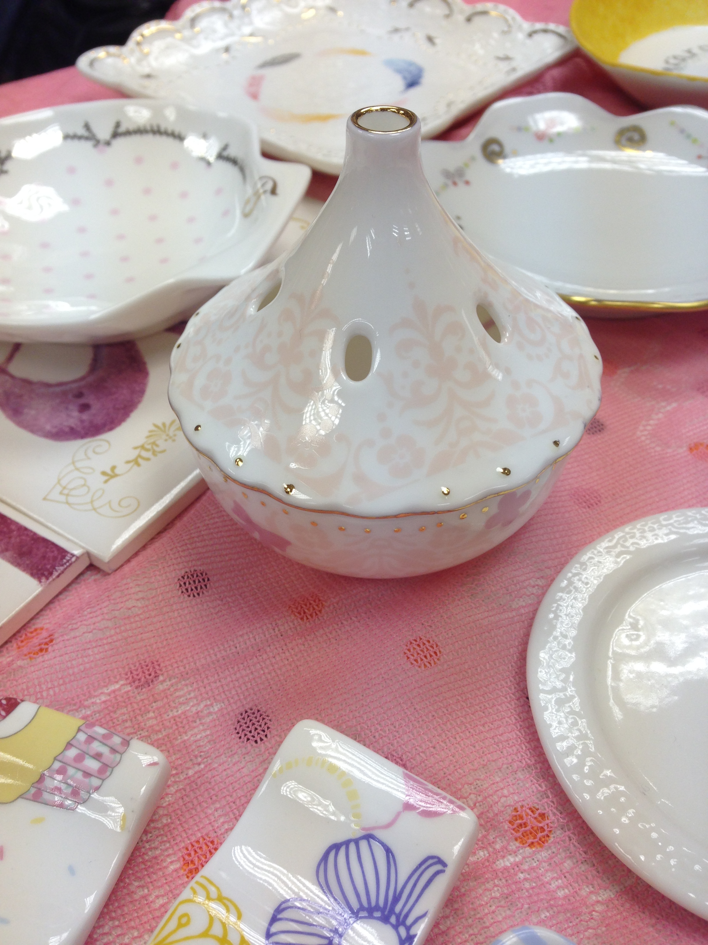 Very lucky to be able to participate in Porcelain Art professional course taught by the Japanese professional instructor Miss 福士智佳子 Atelier Blanche today. I have successfully made this Japanese Porcelain Découpé. This new technique is very practical and unique. Porcelain Art are using white porcelain and Japanese special pattern paper together, to make an ordinary white porcelain utensil an unique art work.