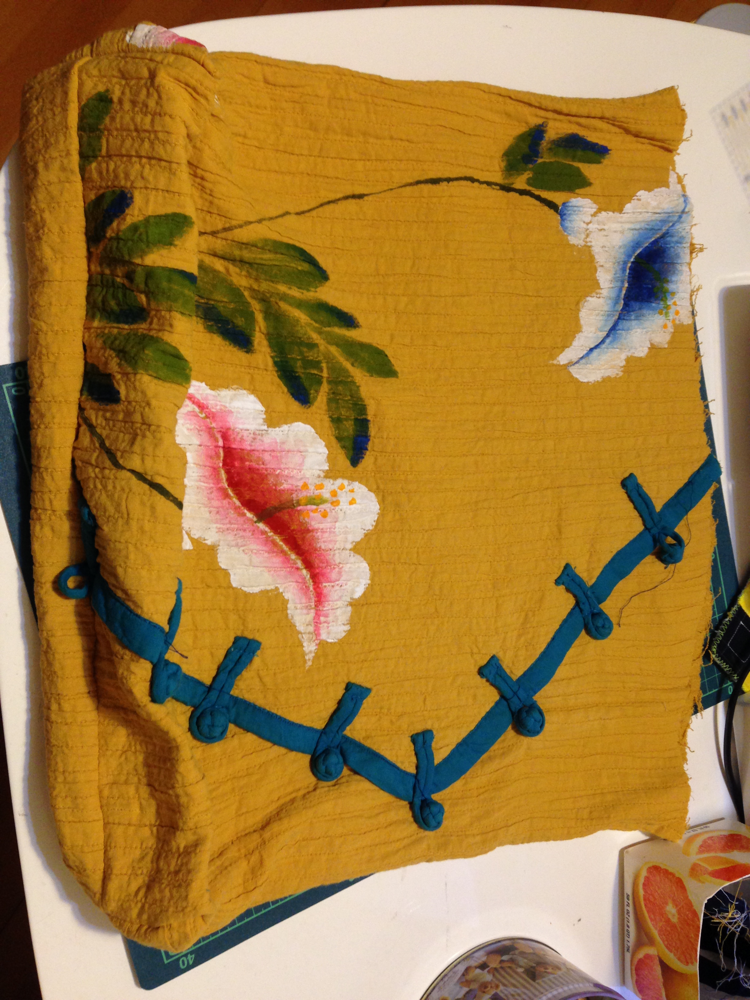 While doing wardrobe makeover for winter, I decided to transform this shirt into a bag.